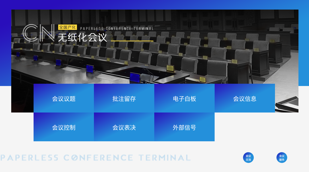 42. ★具备会议议题功能,具备下发议题至侯会屏进行显示;具备会议标语功能,具备多个会议标语切换,并具备推送至大屏和客户端显示;